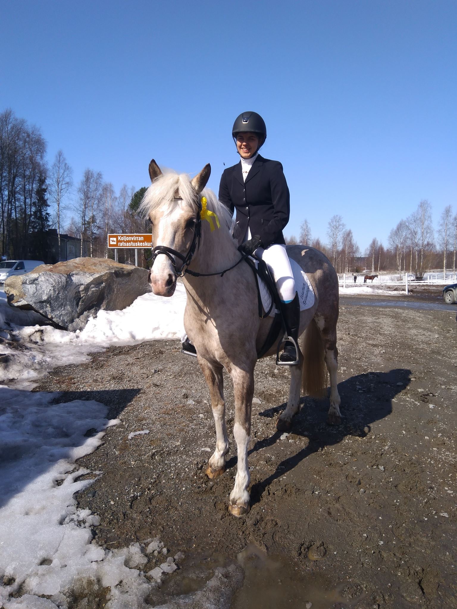 Koljonvirran Ratsastajien kisoissa 15.4. Niina Paldanius - Amorine Tuor sijoittui he C-luokassa viidenneksi prosentein 58,5 ja Katariina Puumalainen ratsasti voittoon He A-luokassa ratsullaan Colia-Pol Smak prosentein 62,5. Onnea tytöt hienoista suorituksista! Kuvassa Niina ja Nikke.